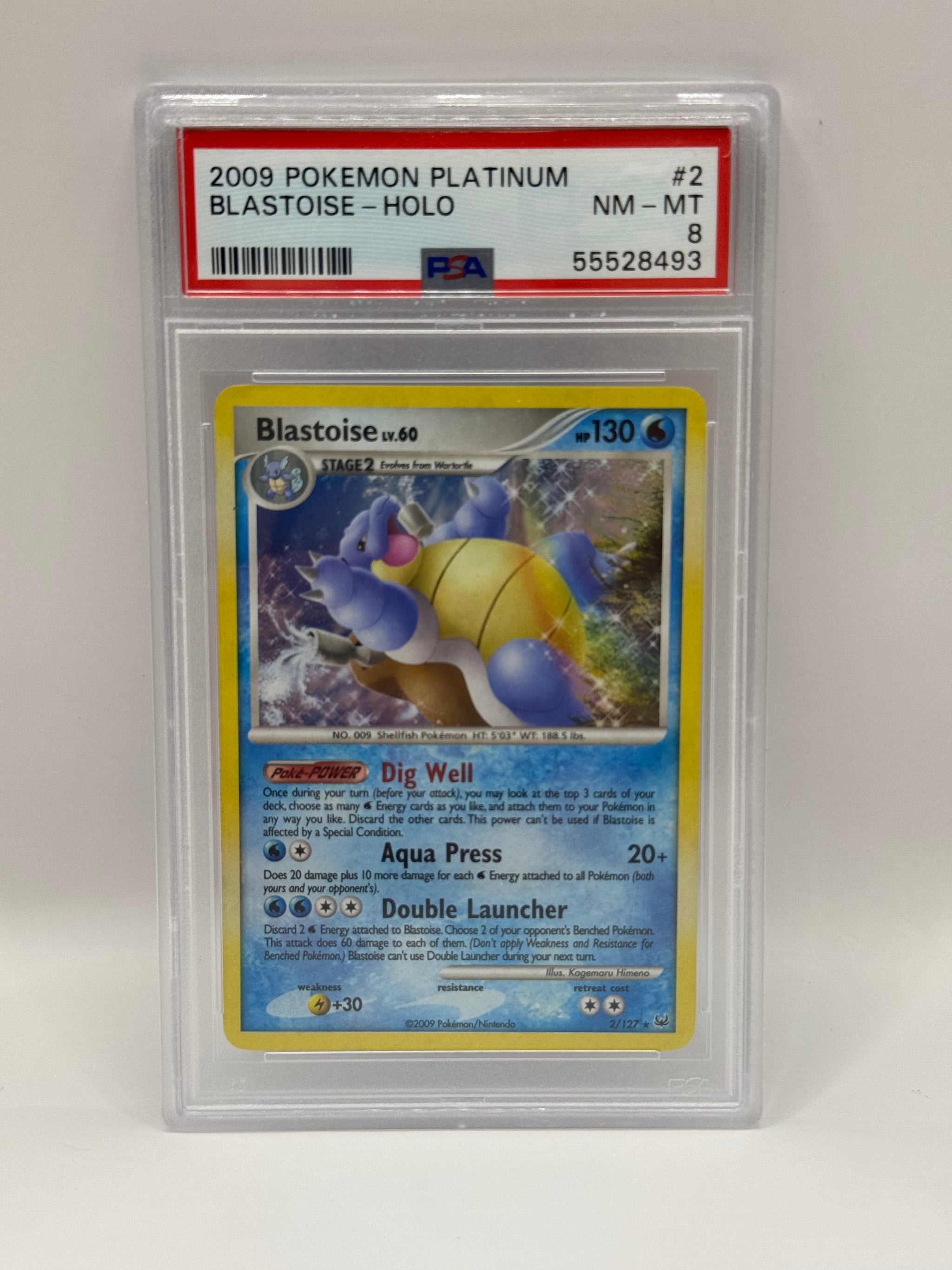 2009 Pokémon Platinum Blastoise Holo 2/127 PSA 8 NEAR MINT - MINT